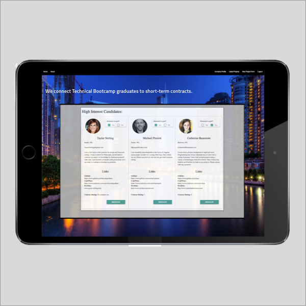 The Bootcamp Resource Network is a platform for connecting Technical Bootcamp graduates to short-term contracts to build their professional portfolios.