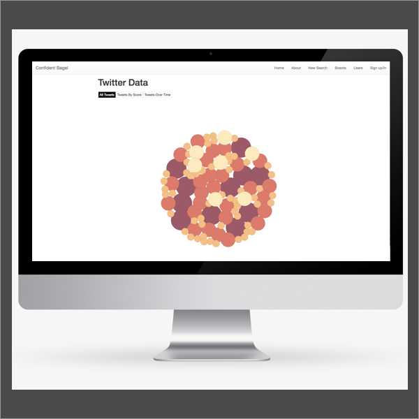 Confident Bagel is a web application that runs a Sentiment Analysis on any given Twitter hashtag and displays visually appealing results.